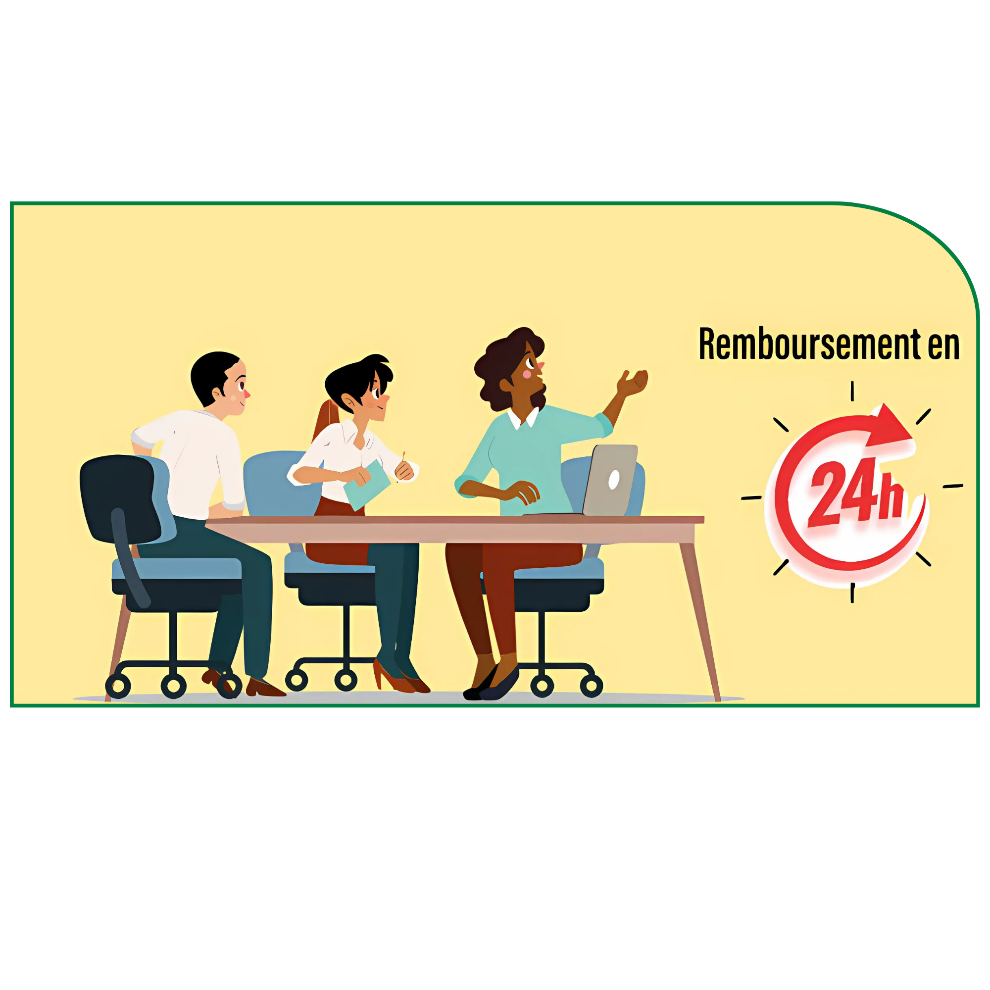 VIMSO depuis son ouverture a fait le pari du remboursement en 24 heures. Pour tous les dossiers préfinancés, l’assuré a la possibilité de déposer les pièces justificatives pour bénéficier de remboursement sur la base du taux de prise en charge du contrat. Pour plus d’efficacité, l’assuré dépose ses pièces au sein de VIMSO. Sur place à l’accueil, on procède à l’enregistrement du dossier. Séance tenante l’assuré choisi le mode de paiement préférentiel. Soit en espèce ou par mobile money dont ORANGE MONEY et WAVE.Il est ensuite dirigé vers le département médical pour vérification technique de son dossier. Dans le cas où toutes les pièces sont complètes, nous assurons le remboursement dans les 24 heures qui suivent: